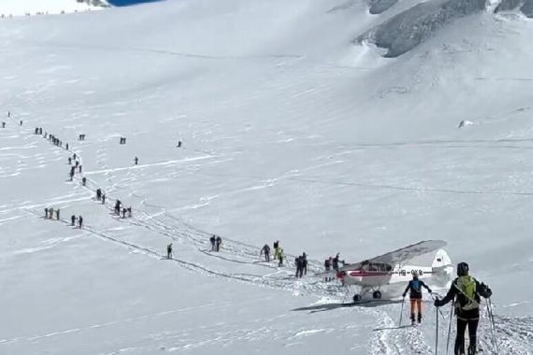 Nella mattinata odierna, un evento sconcertante ha rischiato di trasformarsi in tragedia sul Colle Sesia, a 4.230 metri di quota, nel cuore del massiccio del Monte Rosa. Un aereo da turismo, identificato come un Piper Pa18 appartenente a un aeroclub svizzero, ha effettuato un atterraggio improvviso e rischioso su un ghiacciaio, in prossimità del confine italo-svizzero.L’aereo, dopo aver toccato terra, ha compiuto una virata brusca a sinistra, dirigendosi quasi perpendicolarmente verso una zona intensamente frequentata da scialpinisti impegnati nella salita. Testimoni oculari riferiscono che il velivolo ha proseguito la sua corsa a tutta velocità, attraversando le cordate di alpinisti, per poi decollare nuovamente e allontanarsi.