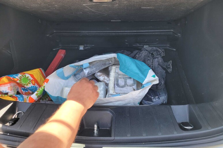 A seguito del comportamento sospetto del conducente, gli agenti hanno proceduto alla perquisizione del veicolo. Nascosta sotto la ruota di scorta nel bagagliaio, è stata rinvenuta una busta contenente diversi panetti di cocaina, per un peso complessivo di 10 chili.