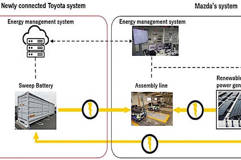 La sperimentazione del progetto Toyota’s Sweep Energy Storage System è stata avviata presso l’impianto Mazda di Hiroshima. Durante l’annuncio, le aziende hanno specificato che il sistema di alimentazione della sede centrale di Mazda, unico sistema di generazione di energia gestito da una casa automobilistica in Giappone, sarà collegato al sistema Toyota che utilizza le batterie dei veicoli elettrici. Questa connessione avverrà attraverso i rispettivi sistemi di gestione dell’energia, permettendo di valutare la stabilità, l’alta qualità e l’efficienza delle operazioni di carica e scarica. Il progetto mira a ottimizzare l’uso delle energie rinnovabili, compensando le fluttuazioni dovute alle condizioni meteorologiche e all’ora del giorno.