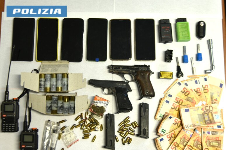 Durante l’irruzione nell’appartamento di Comiso, gli agenti hanno sequestrato due pistole semiautomatiche calibro 7,65 complete di munizioni, una carta d’identità falsa rilasciata dal Comune di Comiso e 6.500 euro in contanti. Il ritrovamento di documenti falsi e armi conferma la pericolosità del soggetto e la sua determinazione a sottrarsi alla giustizia.
