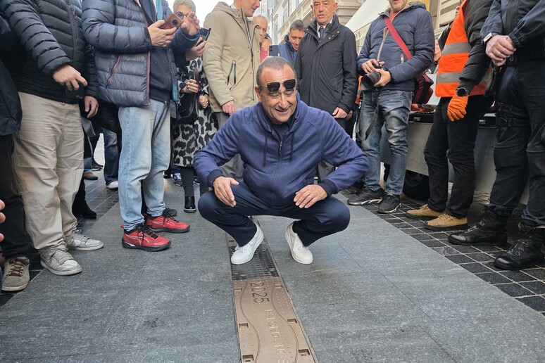 La visita di Conti è stata anche l’occasione per celebrare un rito che unisce passato e presente. Nel cuore pulsante della città, la celebre via Matteotti, si è svolta nel pomeriggio la cerimonia di posa di una nuova targa sulla “Walk of Fame” della musica italiana. Questo percorso simbolico, che si snoda fino al Teatro Ariston, è un vero e proprio libro di storia a cielo aperto, dove ogni placca in bronzo racconta un trionfo, un’emozione, un pezzo del nostro immaginario collettivo.