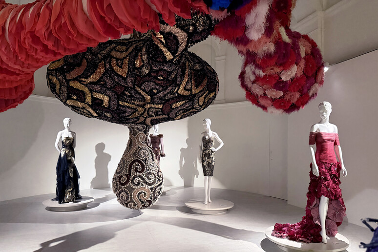 La mostra diventa così un organismo vivo, un corpo espanso dove l’alta moda non è più solo ornamento, ma materia politica, condivisa, che dialoga con l’arte senza gerarchie. Come ha affermato la stessa artista: “Il mio lavoro e quello di Valentino Garavani si parlano fino a convergere in un momento finale, quasi sospeso. Il Signor Valentino crede profondamente nella bellezza, e lo stesso vale per me. Perché la bellezza genera armonia, e l’armonia porta con sé la promessa di pace e giustizia sociale, una promessa di cui il mondo oggi ha un urgente bisogno“.