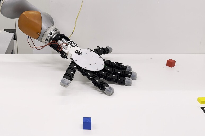 Per aggirare questi ostacoli, i ricercatori dell’EPFL hanno abbandonato il dogma antropomorfico. Hanno progettato una mano con un’architettura simmetrica e modulare, che può ospitare fino a sei dita identiche con punta in silicone per migliorare la presa. In questa configurazione, non esiste un pollice fisso; qualsiasi coppia di dita può essere configurata per agire in opposizione, creando una presa a pinza versatile e potente. Inoltre, il concetto di “palmo” e “dorso” viene superato: la mano è completamente reversibile, capace di afferrare oggetti da entrambi i lati.