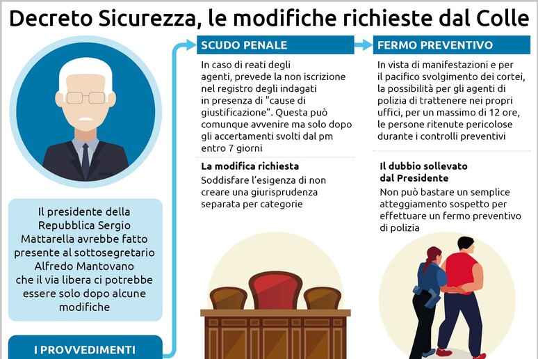 A seguito del confronto tra il sottosegretario alla Presidenza del Consiglio, Alfredo Mantovano, e il Capo dello Stato, la norma è stata profondamente riformulata. Il “fermo” si è trasformato in un “accompagnamento” presso gli uffici di polizia, della durata massima di 12 ore. Tale misura potrà essere applicata solo in presenza di “specifiche e concrete circostanze di tempo e di luogo” e sulla base di elementi di fatto, come il possesso di armi, oggetti atti ad offendere, caschi o petardi. Fondamentale è l’introduzione dell’obbligo di comunicazione immediata al magistrato di turno, il quale potrà verificare la sussistenza delle condizioni di legge e, in caso contrario, ordinare l’immediato rilascio della persona accompagnata.