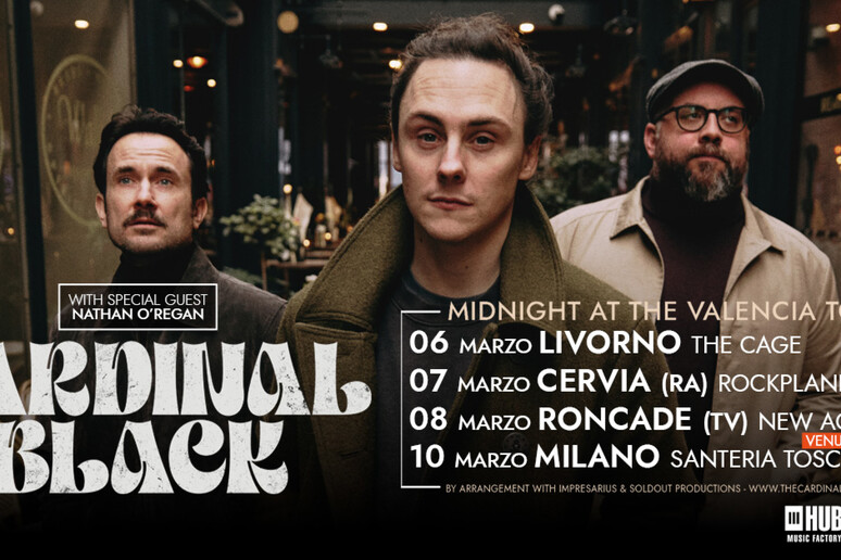 Ad accompagnare la band in questo tour italiano ci sarà il cantautore irlandese Nathan O’Regan. La sua musica, che unisce country, soul e blues, si sposa perfettamente con le atmosfere sonore dei Cardinal Black. O’Regan è un narratore naturale, le cui canzoni, caratterizzate da una voce al contempo grintosa e delicata, raccontano storie d’amore, odio, luce e oscurità, promettendo di scaldare il pubblico prima dell’arrivo dell’onda gallese.